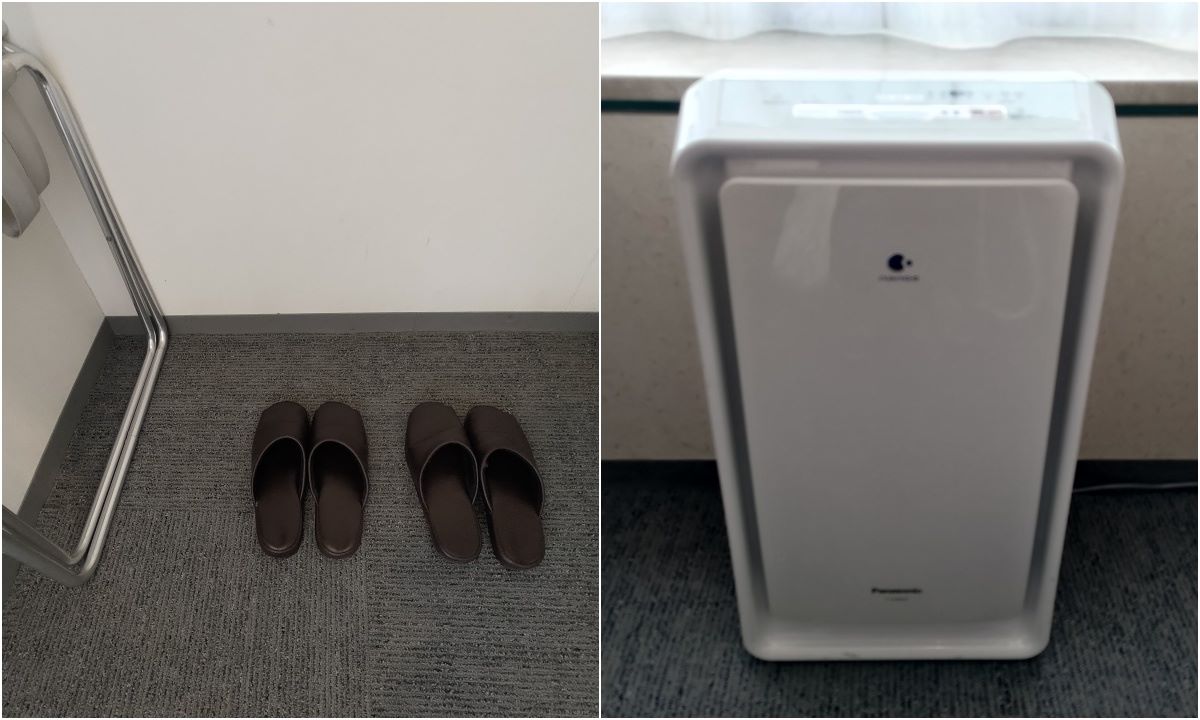 金庫あり、バスローブあり。スリッパ、パジャマはなし。